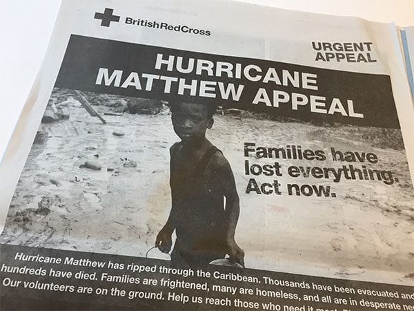 The British Red Cross Hurricane Matthew appeal is accepting donations online, via the phone (0300 456 4999) and post.