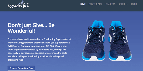 “We believe charities should receive every penny from fundraising efforts. We also believe that Gift Aid should be directed in full to the charities rather than the operators of fundraising platforms. This is why the Wonderful Organisation will not generate profit, or even cover costs, by deducting money from fundraisers’ sponsors or Gift Aid contributions. We are a non-profit organisation run by volunteers and funded entirely by like-minded, philanthropic businesses.”