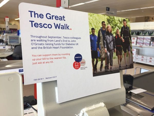 For the next month staff at supermarket Tesco are asking shoppers to round up their payment at the till with a few extra pennies as a donation for Diabetes UK and the British Heart Foundation.