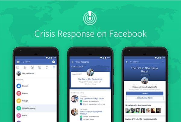 - Safety Check: an easy way to let friends and family know you are safe. It will continue to work the same way it does today and will be featured at the top of each crisis page if you are in the affected area.