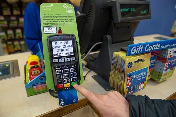 Customers shopping at The Entertainer are given the option of donating a few pence to charity when paying by card or mobile wallet.