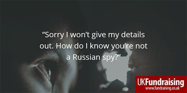 4. “Sorry I won’t give my details out. How do I know you’re not a Russian spy?”