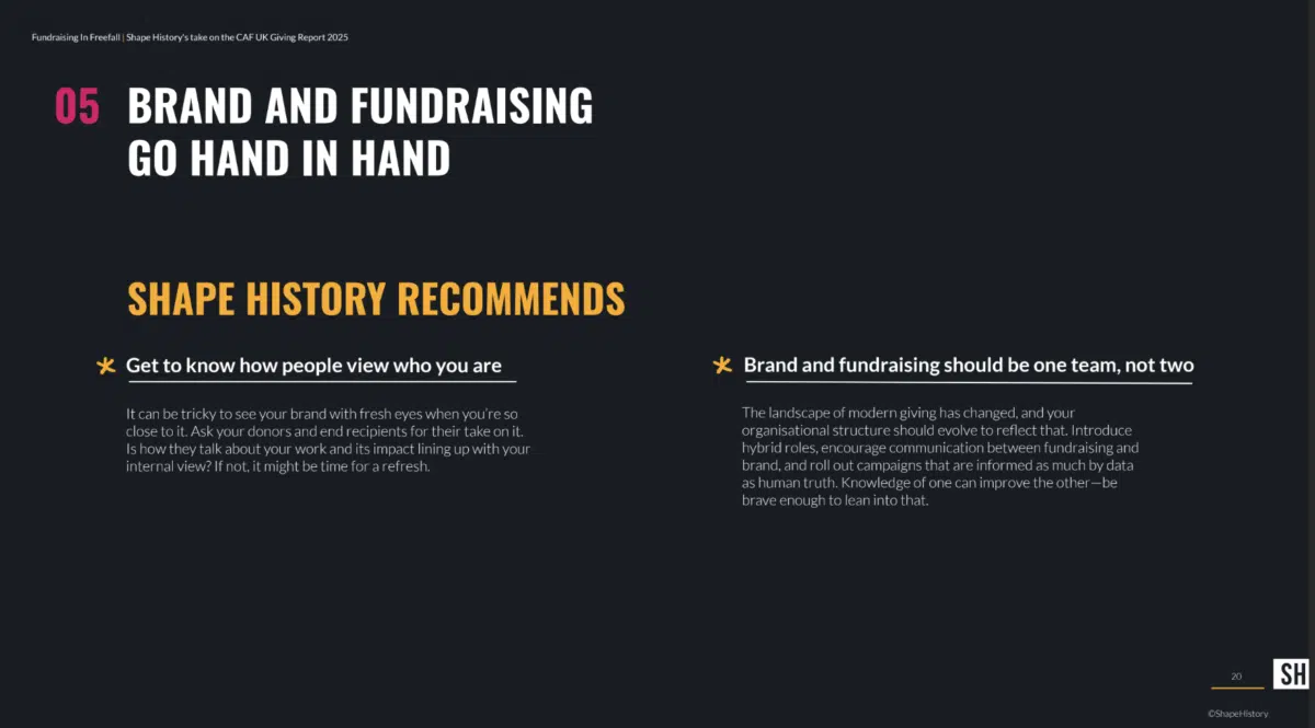 Shape History on fundraising insights in CAF’s UK Giving Report 2025
