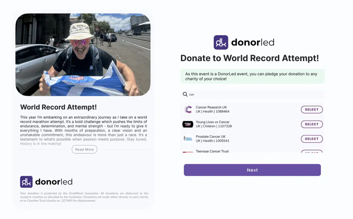 DonorLed takes this further. Instead of the fundraiser nominating charity beneficiaries, now they can enable their supporters to select the recipient charity for their donations, “flipping the script on fundraising”.